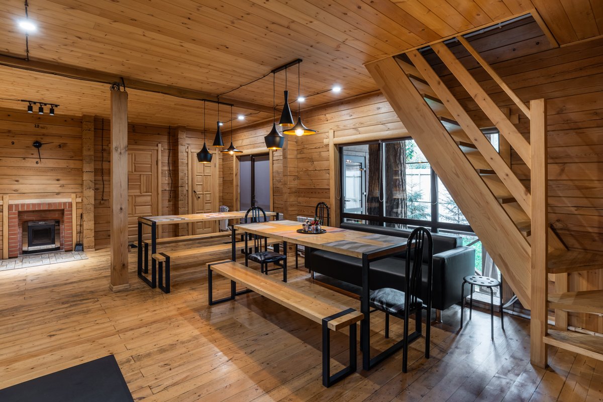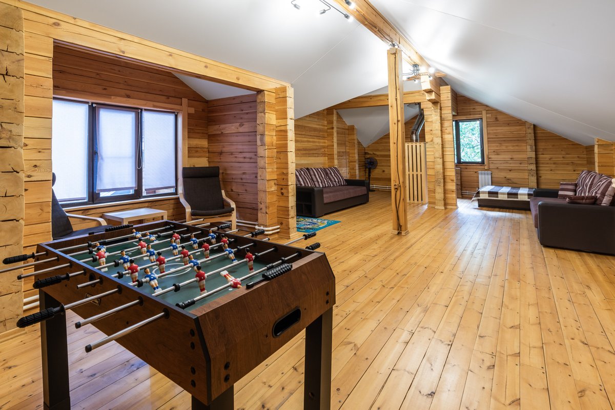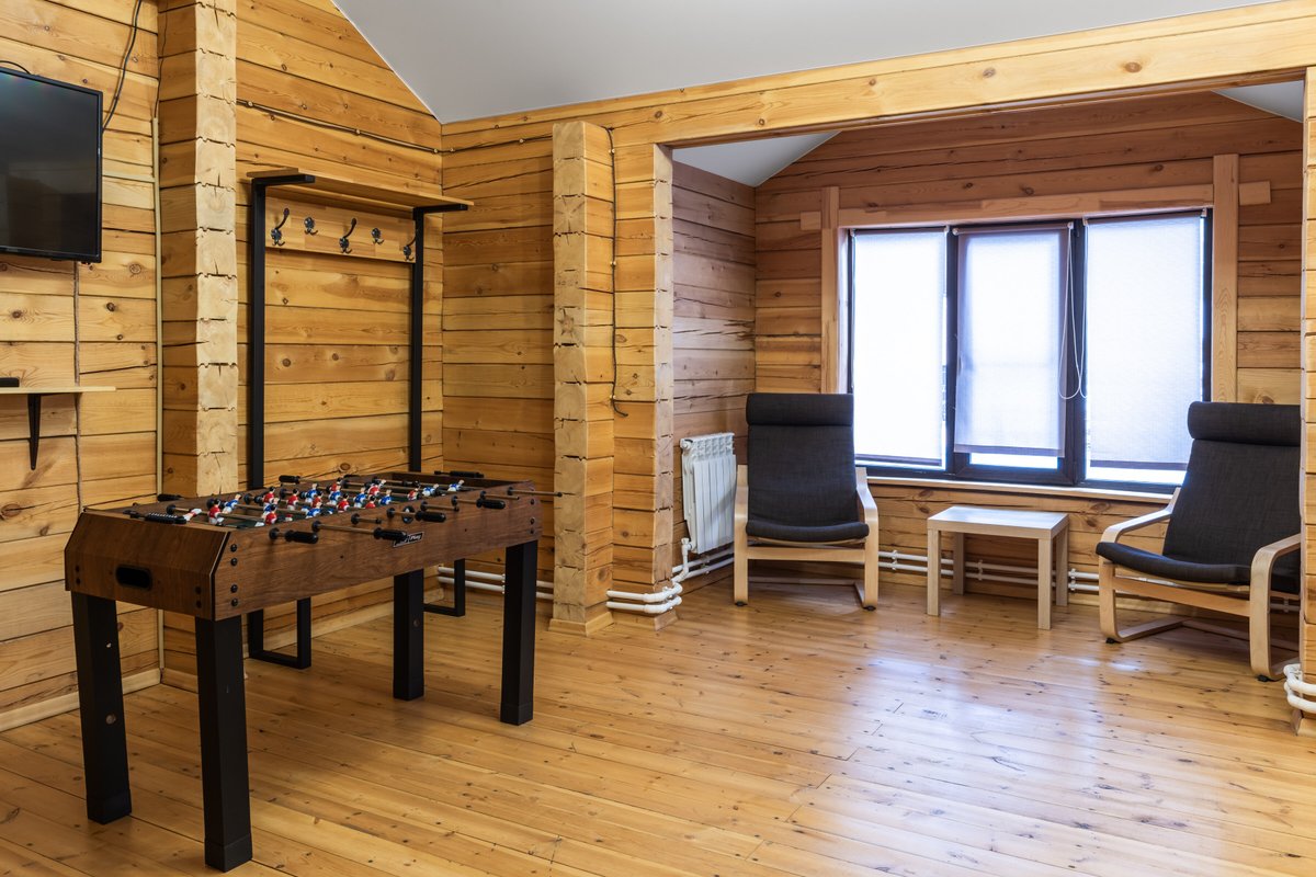 Не хочется в бассейн? Не проблема! Вместо этого можно посидеть в нашей комнате отдыха. Мы ставили своей целью создать здесь уютный, практичный интерьер из преимущественно натуральных, экологичных материалов, выбрать мебель, которая будет в равной степени удобной и приятной глазу. Надеемся, что вам понравится! Для поддержания атмосферы отдыха у нас есть бильярд, камин и караоке. Мы не располагаем собственной кухней, но не возражаем, если вы принесете еду с собой и совместите баню с небольшим застольем. Только не забывайте, что плотная трапеза непосредственно перед посещением парной - это не самая удачная идея, по мнению докторов. А вот после парной можно трапезничать смело!